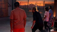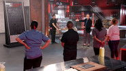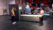The chefs make a hearty, high-end dinner in 45 minutes for a construction crew using only the crew's lunches, bent pans, and construction tools.